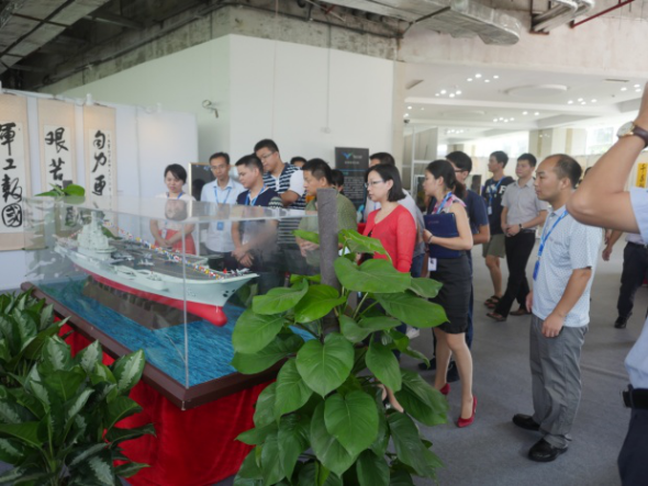 本次展覽共由“國防書畫”、“國防工業(yè)史話圖文”和“軍事模型”三部分組成?!皣罆嫛辈糠止舱钩錾钲诿駞④娖髽I(yè)技術(shù)及管理人員和社會愛國人士主創(chuàng)的書畫作品111幅。最讓大家感到震撼的是“國防工業(yè)史話圖文”部分,在講解員的帶領(lǐng)下,我們從“歷史篇、建國篇、改革篇、夢想篇、氣節(jié)篇”五個方面,回顧了熱兵器戰(zhàn)爭以來我國國防工業(yè)發(fā)展的宏大歷程,親身感受了中國武器裝備如何實現(xiàn)由“萬國造”到“中國造”的偉大轉(zhuǎn)變。此外,貫穿整個展覽之中的“軍事模型”部分則展示了國產(chǎn)海陸空天武器裝備的最新成果,如殲115、殲31、遼寧艦等,為大家?guī)砹瞬灰粯拥囊曈X盛宴,同時也讓大家為祖國國防科技力量的壯大感到驕傲和自豪。