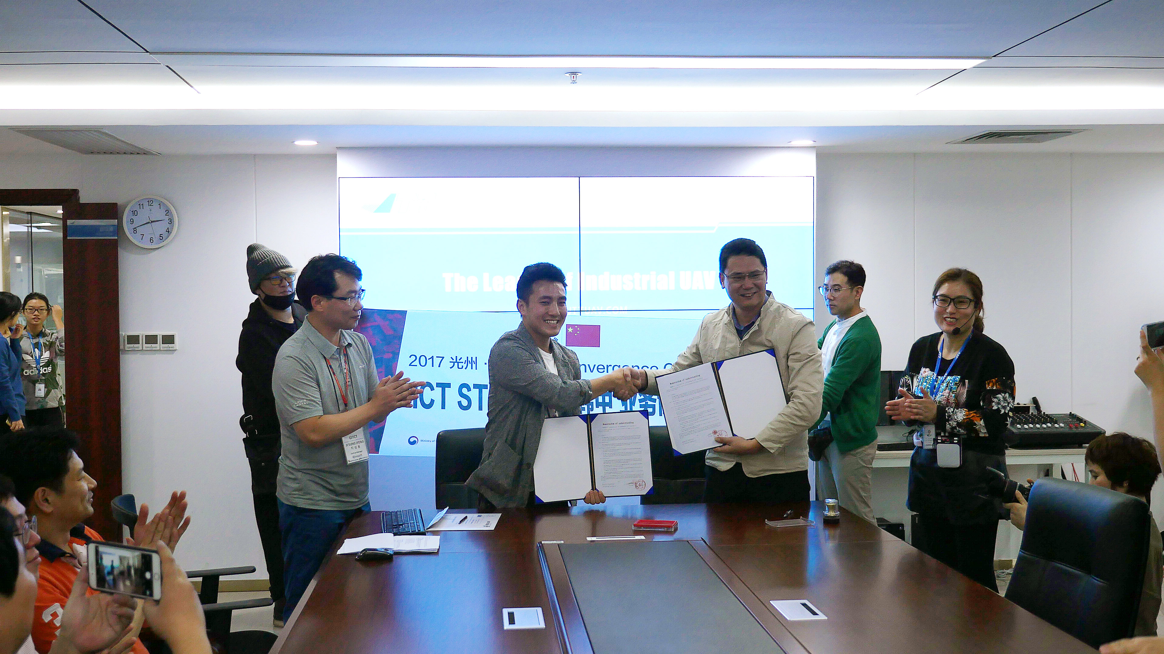 隨后交流團一行人員來到智璟科技公司進行無人機科技領域的全方位交流,達成并簽署了戰(zhàn)略合作關系,并且現(xiàn)場簽訂了品牌和代理商合作協(xié)議。