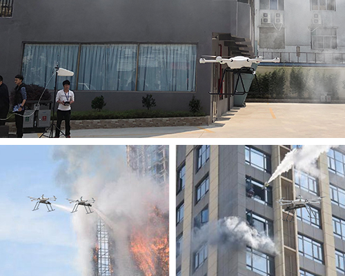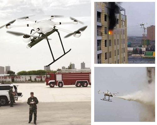 國(guó)內(nèi)外高層建筑火災(zāi)多有發(fā)生,即使有充足精良的消防器材裝備,比如消防車云梯,也因?yàn)楦叨认拗?,而沒有及時(shí)控制火災(zāi)進(jìn)而難以撲滅,最終造成生命和財(cái)產(chǎn)的損失。通過(guò)T60無(wú)人機(jī)搭載泡沫滅火系統(tǒng)和高清攝像機(jī),利用其飛控系統(tǒng)的優(yōu)勢(shì),在1分鐘時(shí)間內(nèi),可以攜帶泡沫滅火掛載飛行至60-100米的高樓上,利用ABC干粉滅火彈滅火,達(dá)到在消防隊(duì)員抵達(dá)前的快速滅火的效果,同時(shí),通過(guò)攝像機(jī)的圖傳系統(tǒng)回傳的畫面,可以迅速觀察火災(zāi)情況,予以決策判斷。
