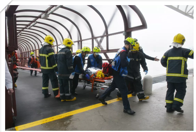 演習模擬海上兩艘游輪在海面相撞,其中一艘游輪有限度自航,游輪上船員及乘客共25人,其中有6 名乘客受輕傷,另有1 名船員于碰撞時不慎落水失蹤。另一海上游船則有船員及乘客共20人,當中有8 名乘客受輕傷,另有2名船員于碰撞時不慎落水失蹤。