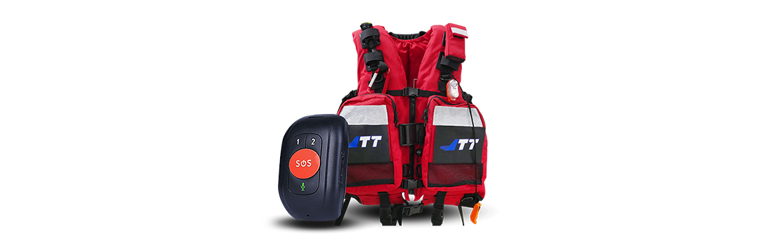 救援人員穿戴智能定位報(bào)警救生衣,在人員落水或人工觸發(fā)情況下,