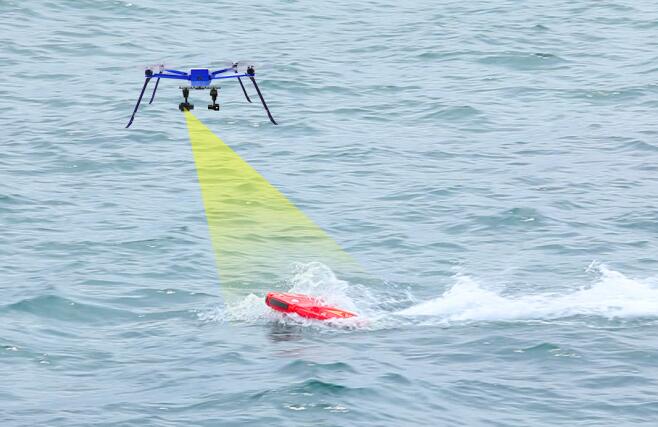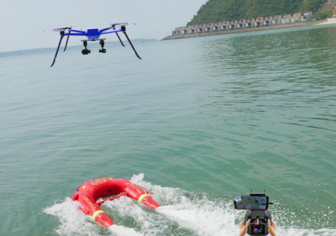 2.空海一體化聯(lián)動,水上機器人可自動跟隨隨無人機到達落水點;