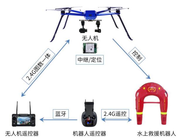 3.通過無人機空中中繼,提升了水上救援機器人的救援范圍,可以實現(xiàn)在5公里以上水域遠程控制救援機器人,讓整體的營救距離更遠,不受限制;