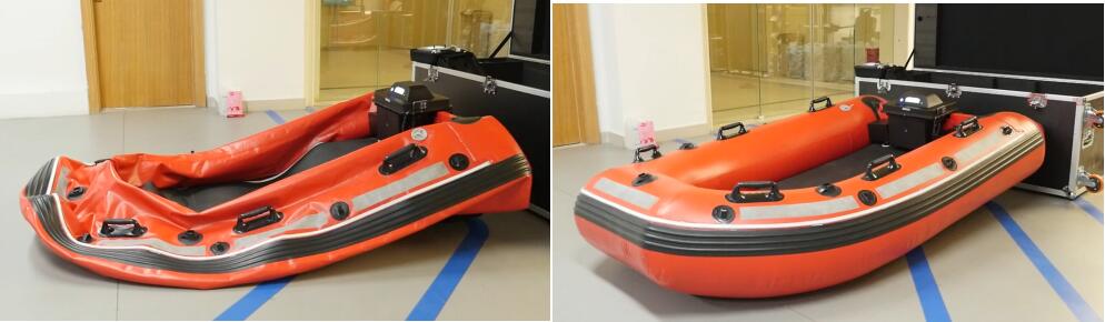 一鍵自動(dòng)充氣,讓水上救援艇在洪水來臨之際,能夠迅速展開行動(dòng)。當(dāng)災(zāi)情突發(fā),洪水肆虐,每一分鐘都可能關(guān)系到無數(shù)人的生命安全。水上救援艇的自動(dòng)充氣功能,在?壓的情況下也能夠?動(dòng)充?,確保了救援人員可以在最短時(shí)間內(nèi)投入行動(dòng),迅速抵達(dá)受災(zāi)地區(qū),為被困人員提供緊急救援。且艇身周邊配有示位燈能夠顯示救援艇位置。