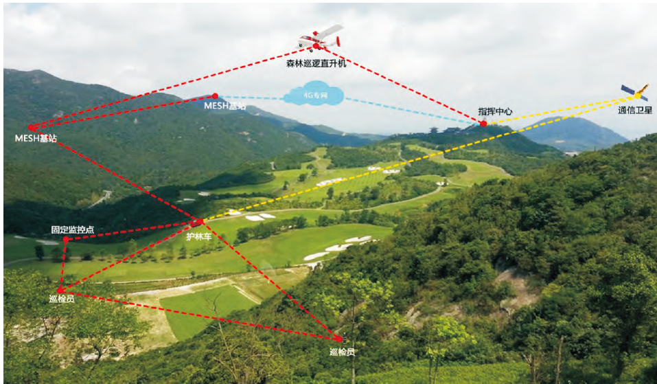 森林防火應(yīng)急救援通信系統(tǒng),利?先進(jìn)的MESH?組?設(shè)備,將適量的遠(yuǎn)距離MESH基站安裝在瞭望塔上,配合護(hù)林?載MESH、森林巡邏直升機(jī)機(jī)載MESH、護(hù)林巡檢員單兵MESH等,建??張森林防?專??線傳輸監(jiān)控?,將林區(qū)實(shí)視頻數(shù)據(jù),環(huán)境數(shù)據(jù)等傳給林區(qū)調(diào)度指揮中?,形成對(duì)整個(gè)林區(qū)的實(shí)時(shí)監(jiān)測監(jiān)控,做到提前預(yù)測,提前防范,提前?動(dòng)。
