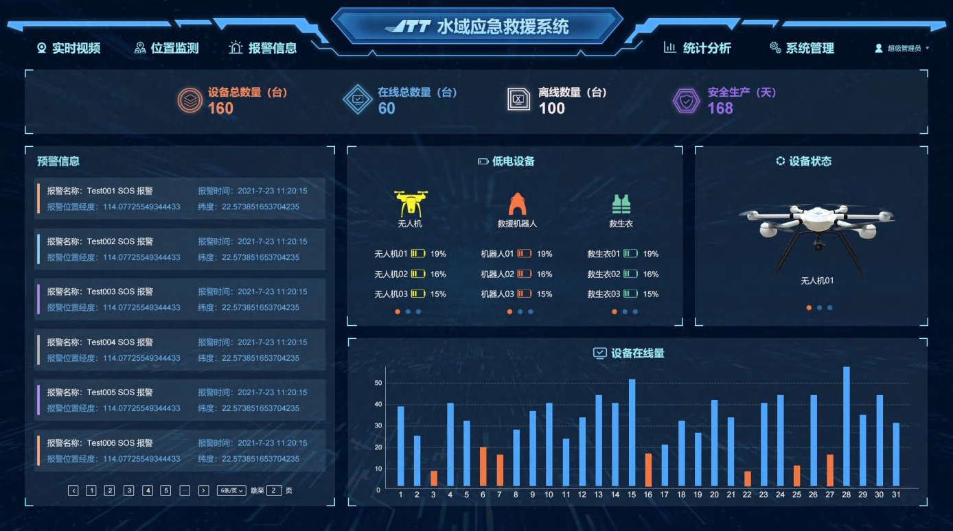 水域應(yīng)急救援系統(tǒng)采用C/S、B/S混合式、多層系統(tǒng)架構(gòu),將水域應(yīng)急救援系統(tǒng)(空中巡查系統(tǒng),水域救援系統(tǒng),作業(yè)平臺AI安全預(yù)警系統(tǒng),救援人員防溺水監(jiān)測系統(tǒng)等)、報(bào)警聯(lián)動等全部融合形成統(tǒng)一的平臺系統(tǒng),滿足了水域的應(yīng)急救援需求,大大降低了系統(tǒng)使用難度、管理效率顯著提升。水域應(yīng)急救援系統(tǒng)前端救援設(shè)備包括水域AI攝像機(jī)、救援無人機(jī)、水上救援機(jī)器人、水上救援艇、智能定位報(bào)警救生衣、停機(jī)坪、太陽能充電板等,組成空中、水面立體化救援網(wǎng)絡(luò),應(yīng)對不同的水域救援場景需求。可廣泛應(yīng)用于抗洪救災(zāi)、海邊安全保障、水域管理、消防、交通指揮、邊防巡邏、應(yīng)急管理、部隊(duì)、大型保障等。