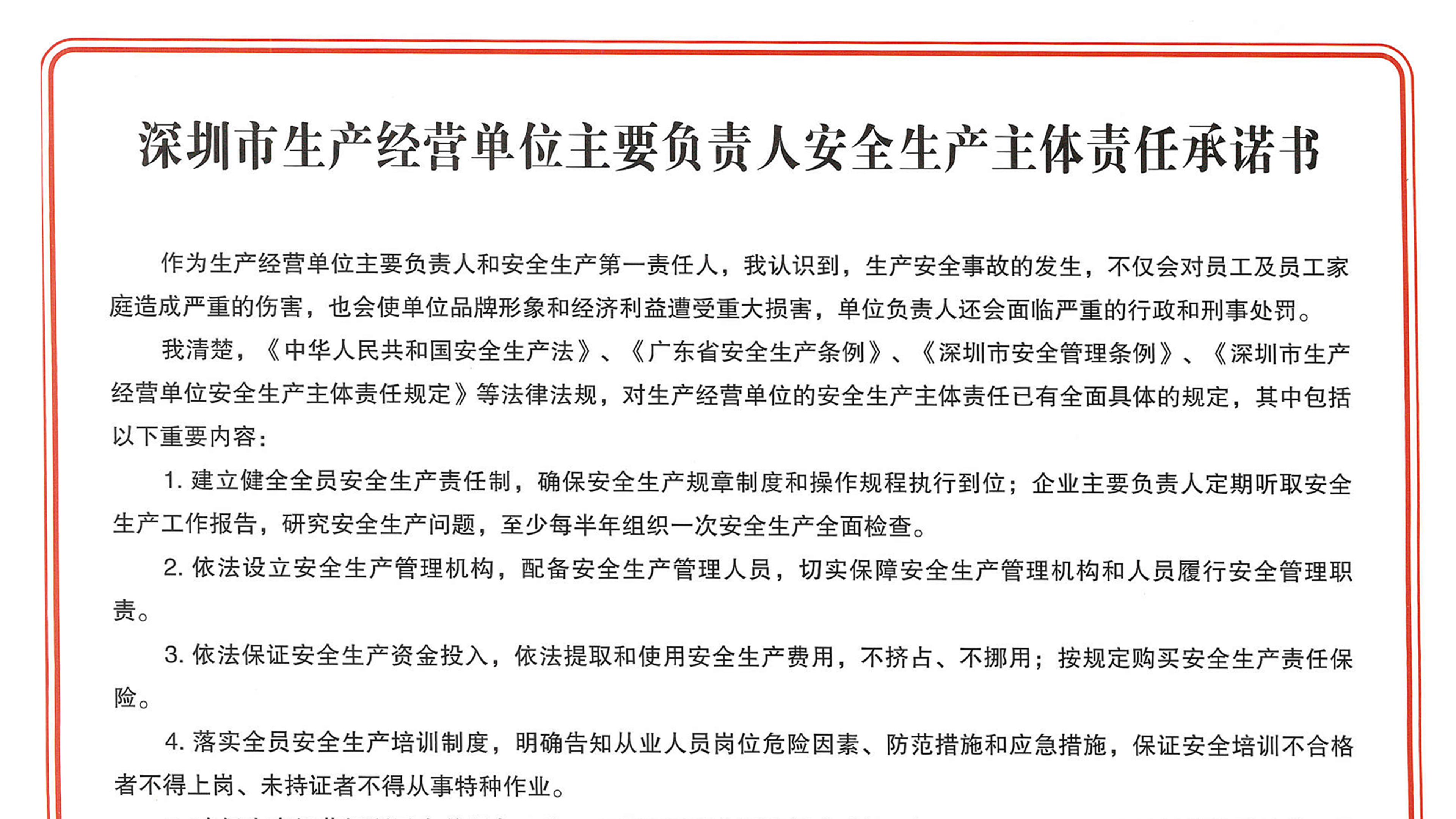 智璟科技簽署《深圳市生產(chǎn)經(jīng)營單位主要負責(zé)人安全生產(chǎn)主體責(zé)任承諾書》