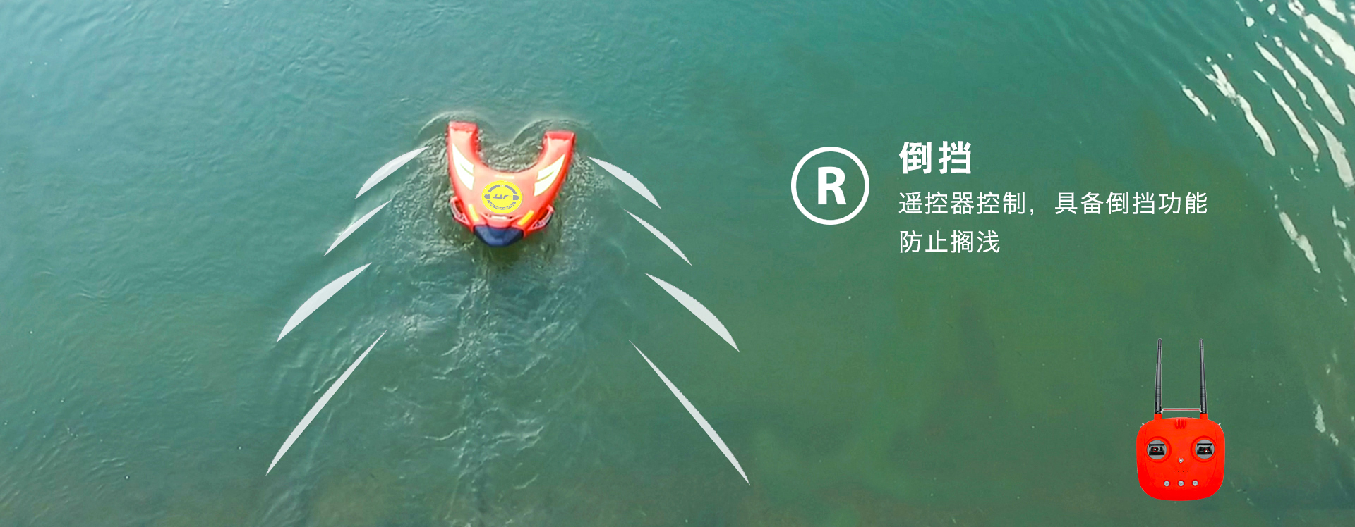 倒擋:遙控器控制,具備倒擋功能,防止擱淺