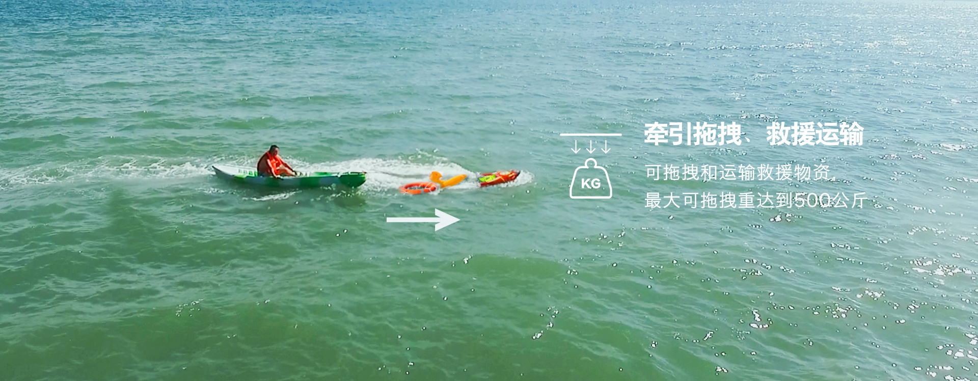 R1除了救人,還能拖拽船只,運(yùn)輸救援物資等,載重可達(dá)500KG,小小身體,帶來(lái)更多可能性。